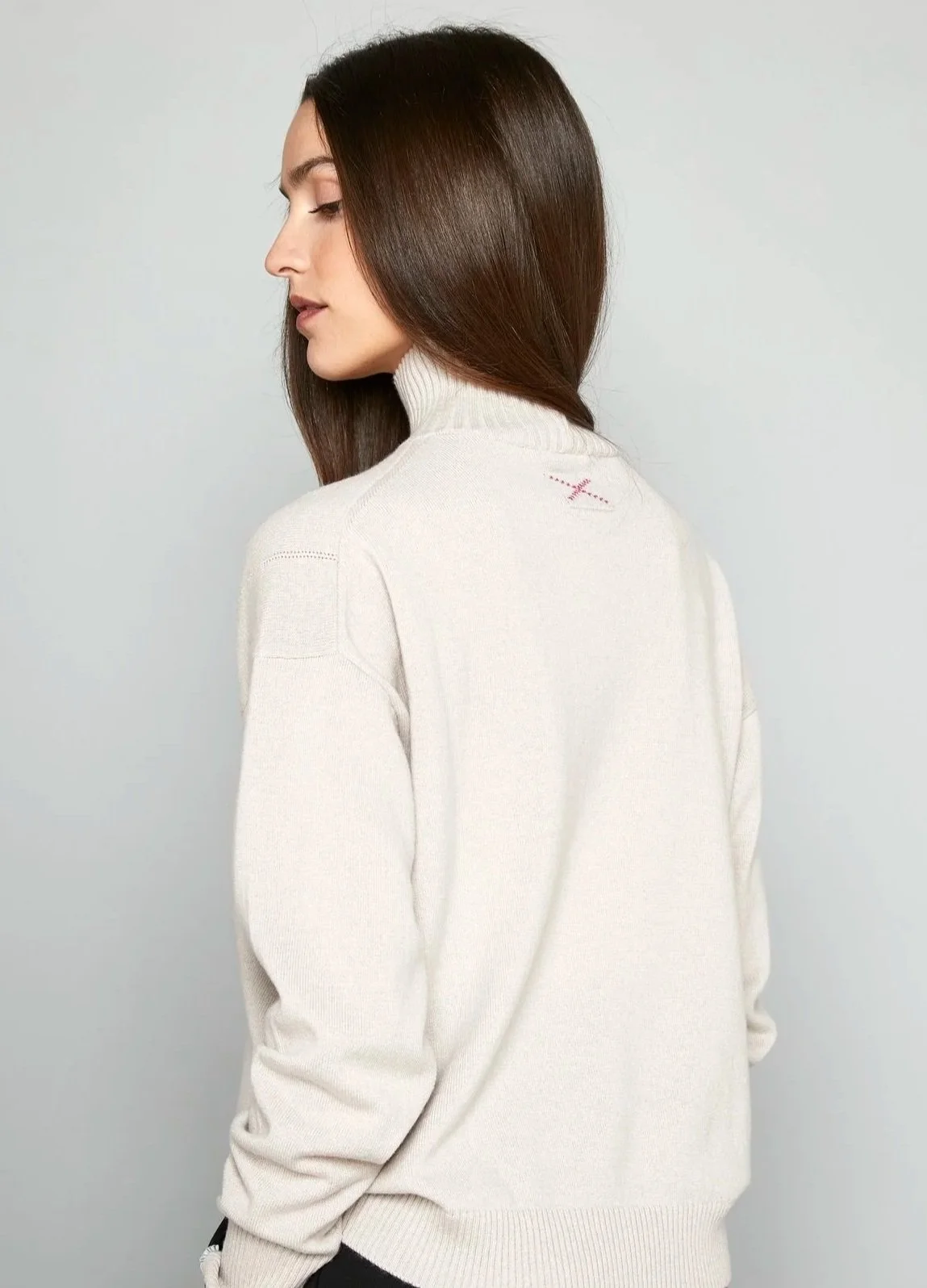 100% CASHMERE TURTLENECK SWEATER WITH OPEN WORK STITCH MOTIF